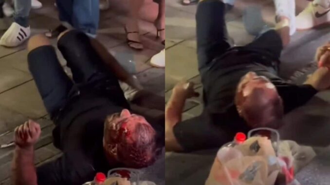 La vidéo se termine avec l’homme au sol, la tête ensanglantée, tandis qu’un Thaïlandais le réprimande pour sa violence.