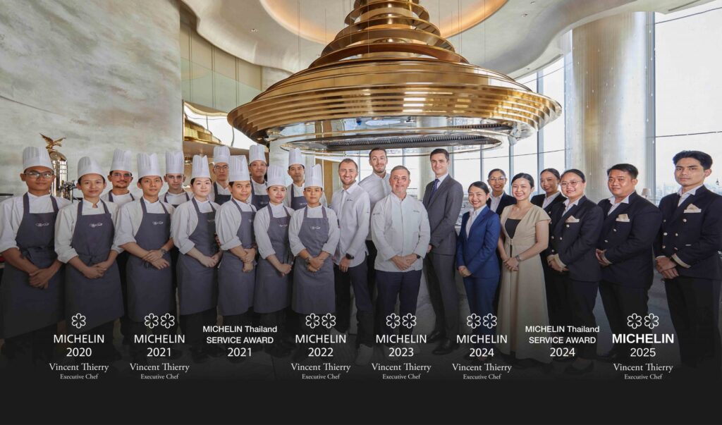 À Bangkok, Chef’s Table by Lebua, 2 étoiles Michelin au 61e étage de la State Tower, dirigé par le chef français Vincent Thierry, triomphe comme meilleur restaurant de cuisine française au monde.