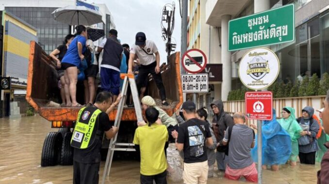 Le 23 novembre 2025, de fortes pluies ont provoqué des inondations massives dans la ville de Hat Yai, province de Songkhla, isolant plus de 400 touristes dans leurs hôtels. Les autorités locales ont déployé de gros camions du département royal d’irrigation pour évacuer 402 personnes vers des abris municipaux.