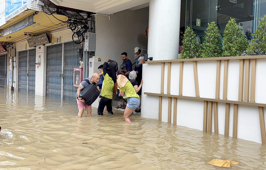 Les autorités thaïlandaises ont secouru 402 touristes piégés dans 17 hôtels submergés par les inondations à Hat Yai, province de Songkhla, ce 23 novembre 2025, suite à des pluies intenses.