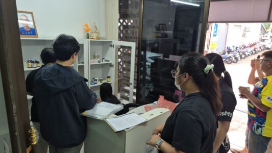 Les deux médecins non diplômés (un homme, une femme) ont fui dans deux voitures. Le rez-de-chaussée abritait une clinique générale ; les étages 2-4, des chambres louées. Avec l’aide du propriétaire, les agents ont saisi des médicaments pour maladies spécifiques, produits dangereux et un tampon « Dr. Natichai Rueangdamrong » (MD: 30281). Aucune licence ni affichage de praticiens ; rares patients thaïs.