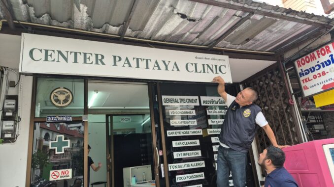Le 12 novembre à 15h30, la police du 2e Bureau d’enquête régionale (Pol. Lt. Col. Kiatisak Sathong-oi, chef, et Pol. Maj. Gen. Tianchai Loetmanee, superviseur), avec M. Jirasan Miratthanawat, chef du groupe protection consommateur et santé publique du bureau de santé de Chon Buri, ont perquisitionné la Center Pattaya Cosmetic Clinic (village 9, sous-district de Thung Prue, district de Bang Lamung, province de Chon Buri).