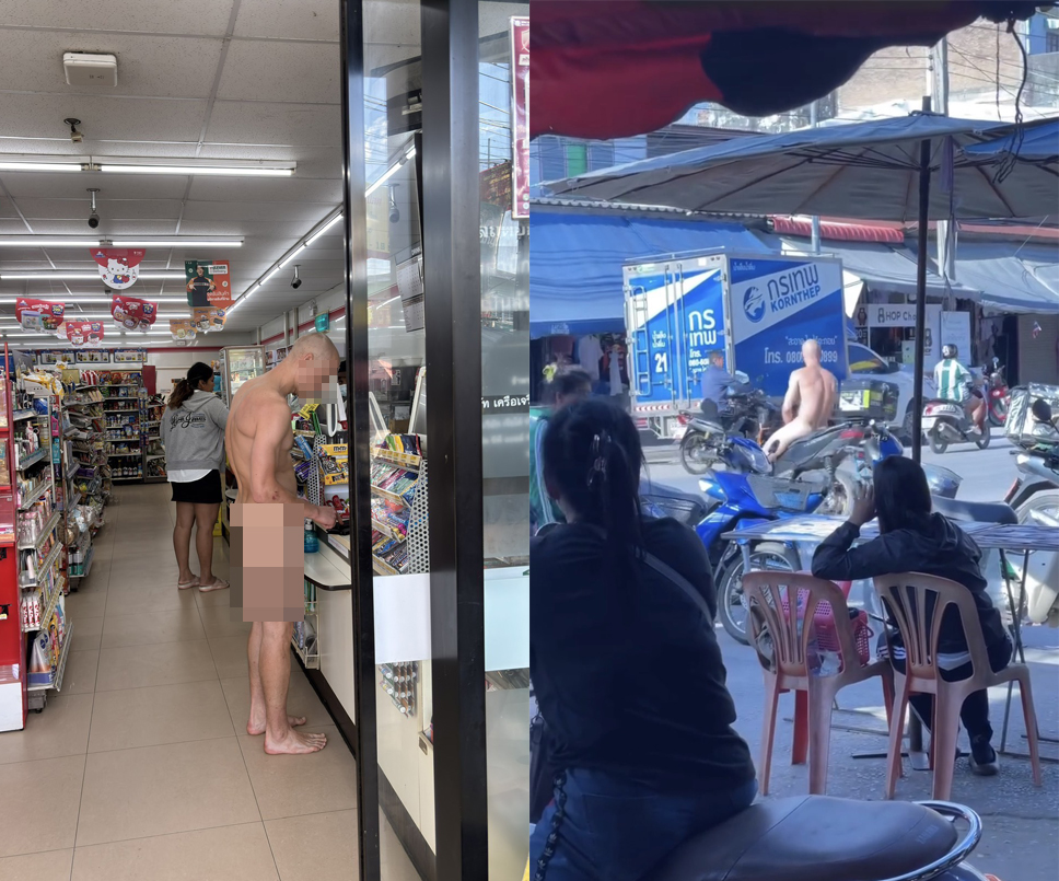Le 16 novembre 2025 vers 7h30, un homme occidental d’une trentaine d’années a semé la panique au marché de Khong Lan, province de Kamphaeng Phet, en entrant nu dans un convenience store, couvrant seulement ses parties génitales d’une main. Photos et vidéos d’un résident montrent la scène surréaliste.