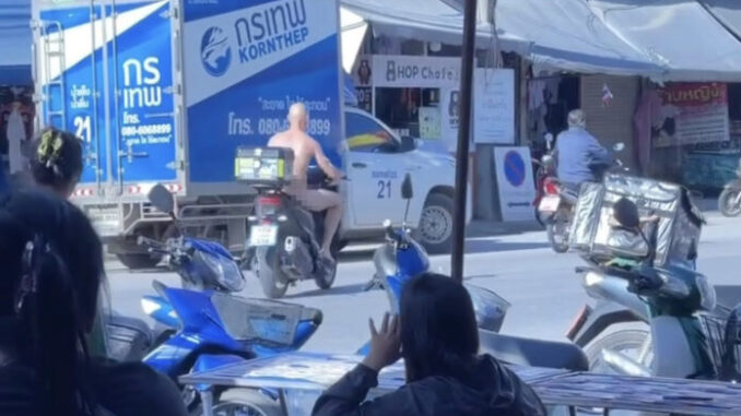 Un Occidental dans la trentaine totalement nu a choqué les habitants de Kamphaeng Phet en roulant à moto et entrant dans un magasin sans vêtements, avant d’être appréhendé chez lui.
