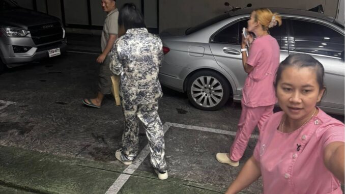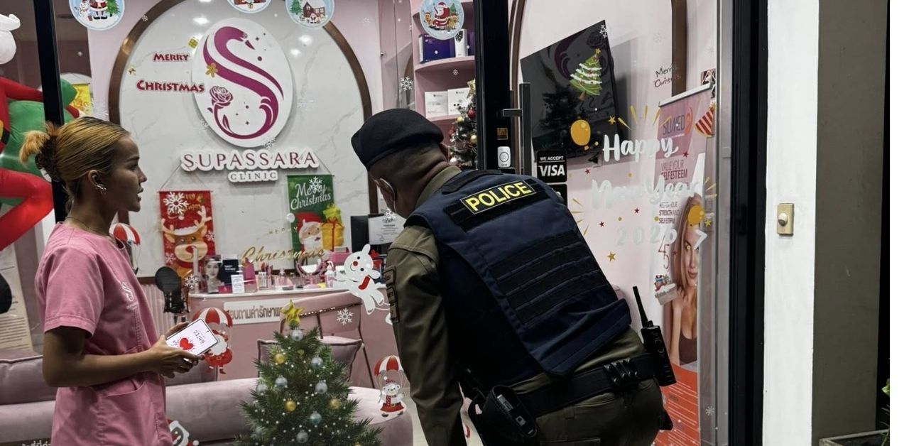La cliente est restée sur la table d’opération de la Supassara Clinic dans le quartier On Nut depuis 13h, regardant des vidéos TikTok. Supassara a posté la vidéo avec des policiers persuadant la cliente de régler la dette restante.