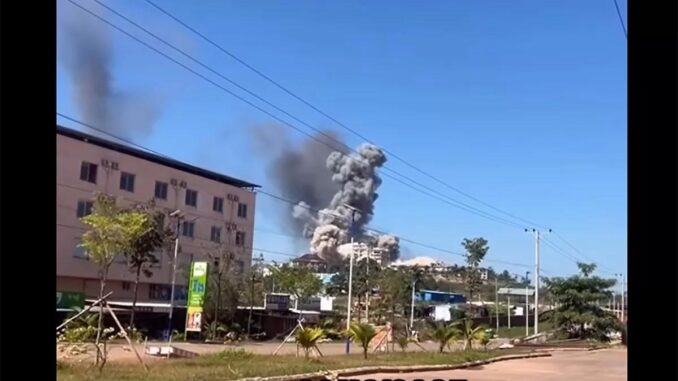 Des avions de combat F-16 thaïlandais ont bombardé samedi un bâtiment de casino qui serait utilisé par l’armée cambodgienne près de Thmor Da dans la province de Pursat, en face de la province thaïlandaise de Trat.