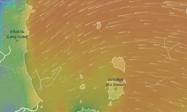 La vague de froid qui avait fait chuter les températures à un record de 21,3 °C le 3 décembre s’est muée en un front pluvieux persistant. Selon le Département météorologique thaïlandais (TMD), la mousson de nord-est gagne en intensité dans le golfe de Thaïlande, provoquant des pluies intermittentes et des rafales jusqu’à 30 km/h. La marée haute, combinée à ces précipitations, pourraient inonder par endroit les routes côtières et les plages comme Chaweng ou Lamai.