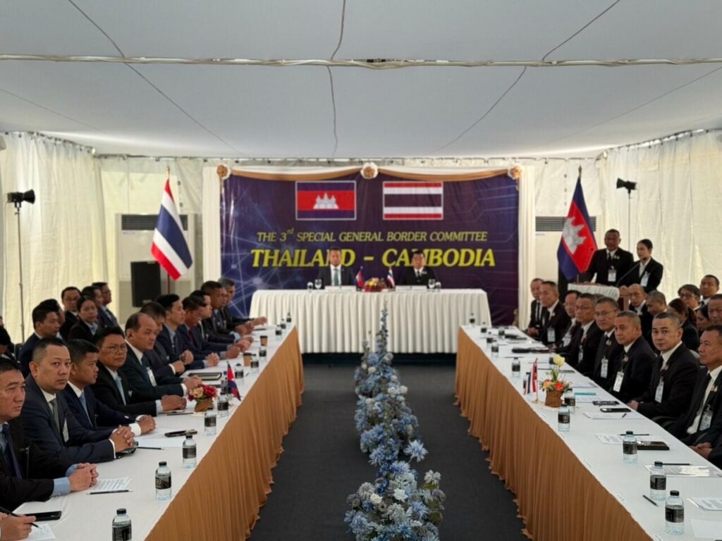 L’équipe thaïlandaise est arrivée en avance au poste frontalier permanent de Ban Phak Kat, dans la province de Chanthaburi, sous la protection des marines, de la police et des autorités locales. À 9h, Natthapol Nakpanich a rejoint la délégation cambodgienne arrivée à 9h30. Les discussions ont duré 30 minutes dans le bâtiment du commandement des rangers-marines n°4.