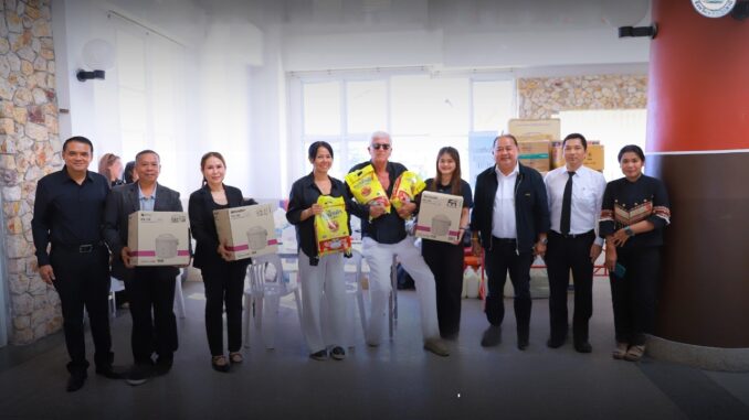 À 10 h 30 ce 2 décembre 2025, dans le hall de l’hôtel de ville de Koh Samui, M. Gilles Rozenberg, Français installé sur l’île depuis plus de 15 ans, et sa femme thaïlandaise Pikul Jairew ont remis leur don en mains propres à l’adjoint au maire Sutham Samthong et au secrétaire Prasert Rattanawicha.