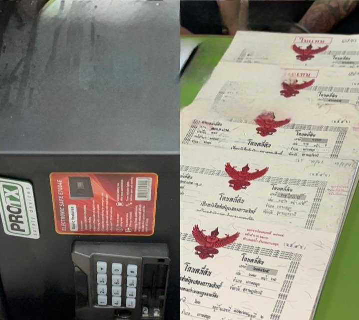 Le suspect, a forcé la porte d’une villa de luxe appartenant à des propriétaires chinois, s’emparant d’un coffre-fort contenant 11 titres de propriété foncière originaux (documents légaux attestant la possession de terrains), 7 livrets de résidence originaux (appelés « tabien baan » en thaï, ce sont des registres officiels de domicile prouvant l’adresse légale et servant à de nombreuses démarches administratives), ainsi que des plans détaillés de construction de villas, l’ensemble évalué à environ 100 millions de bahts (soit près de 2,5 millions d’euros au taux de change actuel). Il a ensuite jeté le coffre vide dans le sous-district d’Ang Thong avant de s’enfuir avec les précieux documents.