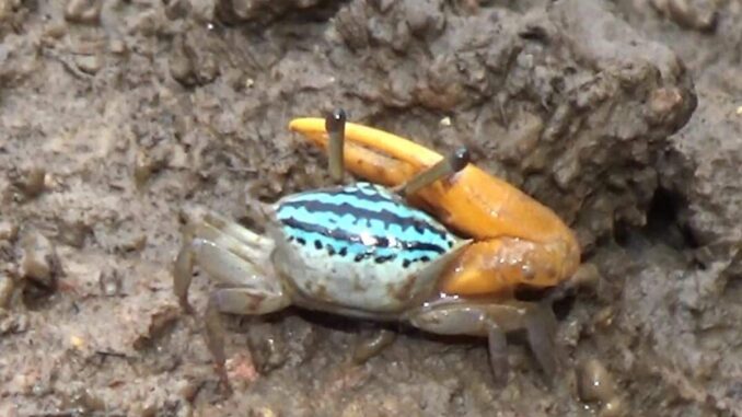 Surnommés localement les « prédicteurs de marée », ces crabes s’enfouissent instinctivement avant la haute mer, scellant leurs trous pour éviter l’inondation. Ils sont rares à haute marée, sauf dans les zones surélevées, et prospèrent dans les mangroves, signalant une bonne santé environnementale.
