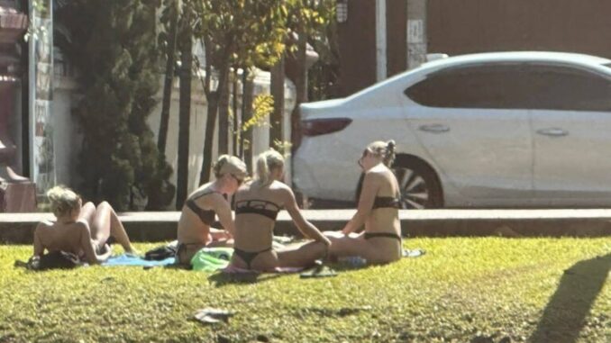 Le 5 janvier 2026, vers 13 heures, un groupe de jeunes touristes étrangères en bikini a été aperçu assis et allongé sur l’herbe à l’intérieur des douves de la vieille ville de Chiang Mai, juste en face du temple bouddhiste Wat Ratchamonthian.