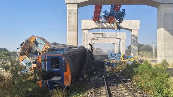BREAKING: Tragic accident in Thailand: At least 22 dead and 55 injured after a high-speed rail construction crane collapsed onto Train No. 21 traveling from Bangkok to Ubon Ratchathani, between Nong Nam Khuean and Si Khio stations. There were 190 passengers on board. pic.twitter.com/OBrvp7M6WS