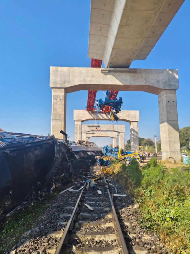Une grue utilisée pour la construction d’un pont ferroviaire à grande vitesse s’est effondrée sur les voies alors qu’un train de passagers reliant Bangkok à Ubon Ratchathani passait.