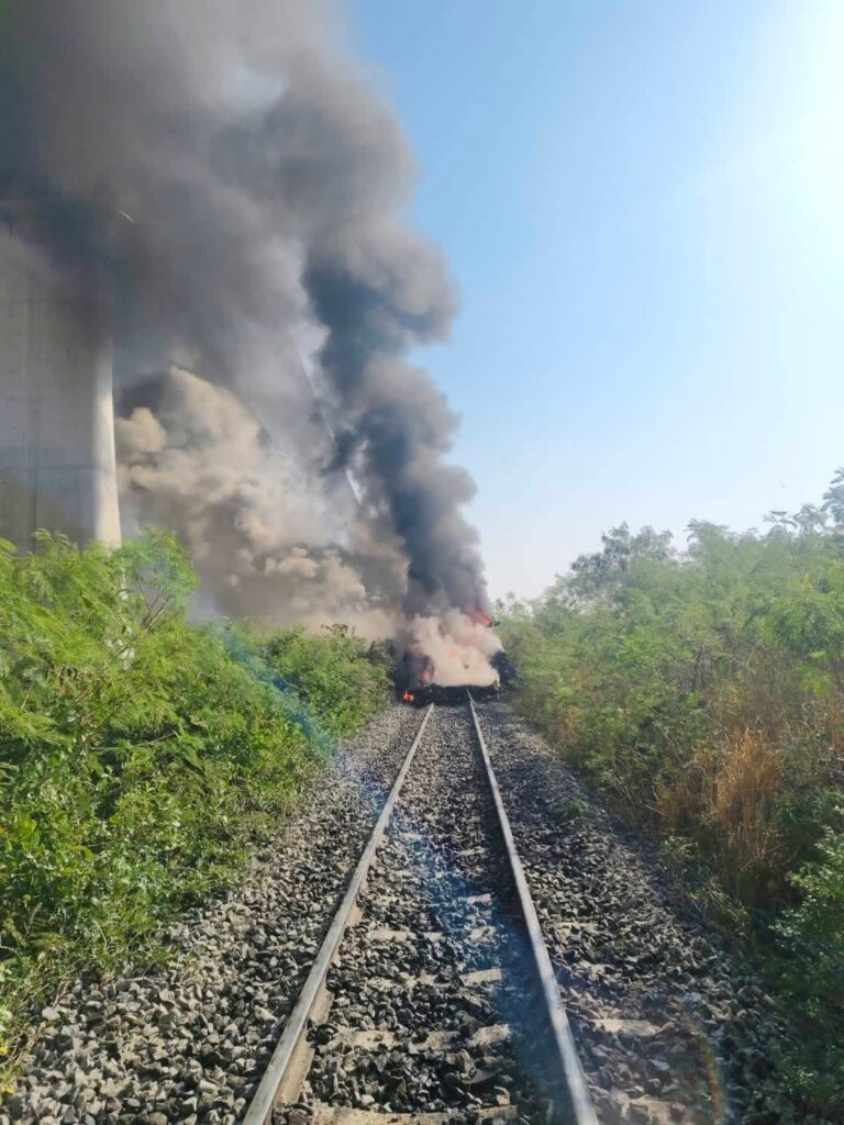 Le train a percuté violemment la grue, provoquant un bruit assourdissant, le déraillement de plusieurs wagons et un incendie qui a piégé des passagers à l’intérieur.