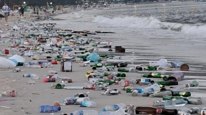 La plage de Patong envahie par des tonnes de déchets au lendemain des festivités, suscitant l’inquiétude pour l’environnement marin et un appel à une meilleure gestion pour les années futures.