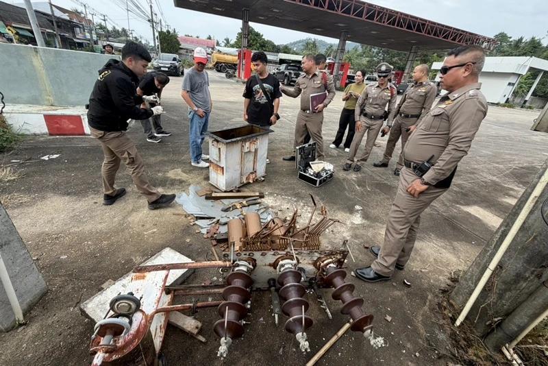 L’arrestation a eu lieu dans l’après-midi du 26 février, près de l’entrée de la ruelle Mae Nam Soi 1, dans la commune de Mae Nam, district de Koh Samui. Interrogé sur place puis au poste de police, le suspect a avoué les faits : dans la nuit du 6 février vers 2 h 30, il s’est introduit sur le site d’une ancienne station-service Caltex abandonnée, située le long de la route circulaire de l’île, face à la mairie de Koh Samui. Il a escaladé le poteau pour extraire les câbles de cuivre du transformateur électrique, les a découpés sur place puis a vendu 22 kg de cuivre à un magasin de récupération dans la ruelle 7 de Mae Nam, empochant 6 600 bahts. Cet argent a servi à acheter de la méthamphétamine pour sa consommation personnelle.