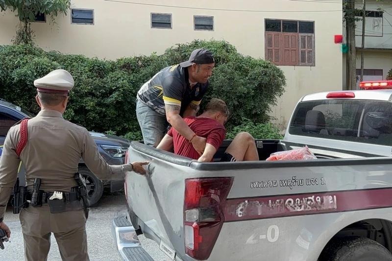 Intervention rapide de la police de Koh Samui et Bo Phut : un touriste norvégien de 27 ans, Kristoffer Winther, en tee-shirt rouge et shorts, probablement sous l’effet de stupéfiants, a agressé un chauffeur et volé son véhicule à Mae Nam avant d’être intercepté au carrefour de Bo Phut.