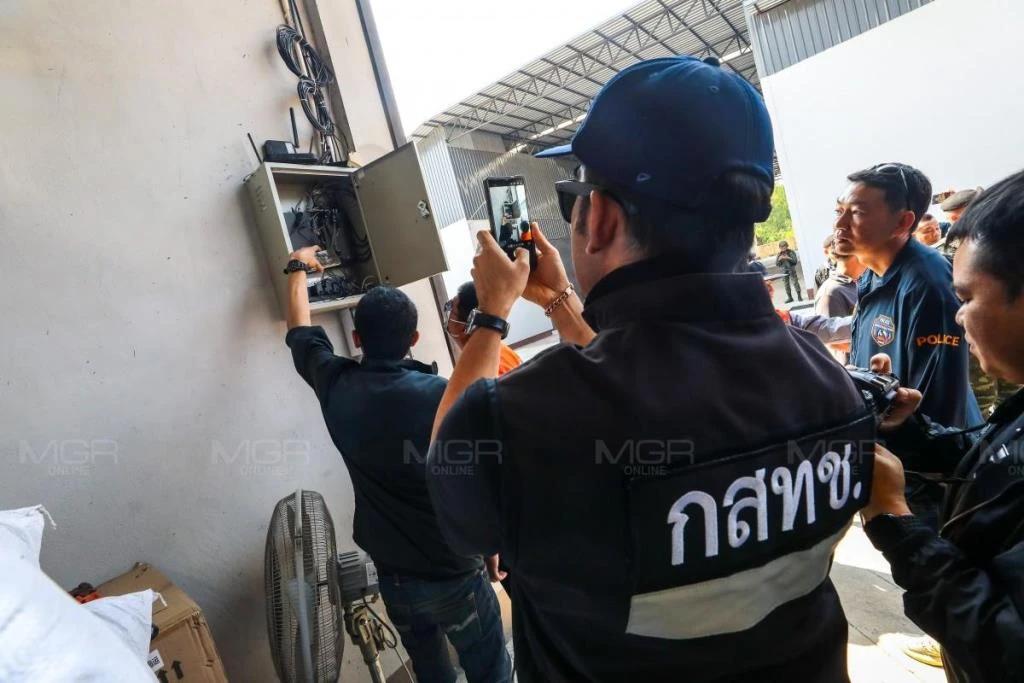Police, armée et opérateurs télécoms ont perquisitionné un entrepôt à Aranyaprathet pour démanteler un réseau envoyant clandestinement des signaux internet thaïlandais vers le Cambodge.