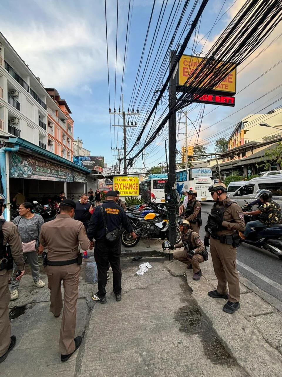 Aussitôt prévenu, le commissaire Korakrit Khankhruea, chef du poste de Patong, s’est rendu sur place avec une équipe d’enquêteurs. À leur arrivée, la victime avait déjà été transportée à l’hôpital de Patong. Sur les lieux, les policiers ont découvert des douilles percutées et des traces de sang.