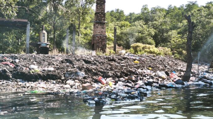 Sur place, ils ont ramassé les déchets flottants, déplacé les piles de déchets menaçant de tomber à l’eau vers une zone plus élevée près de l’incinérateur, et installé un panneau d’avertissement : « Interdiction de jeter des déchets dans le parc national – contrevenants passibles de sanctions légales ».