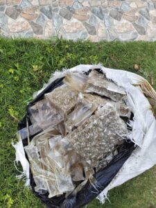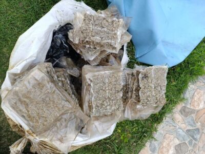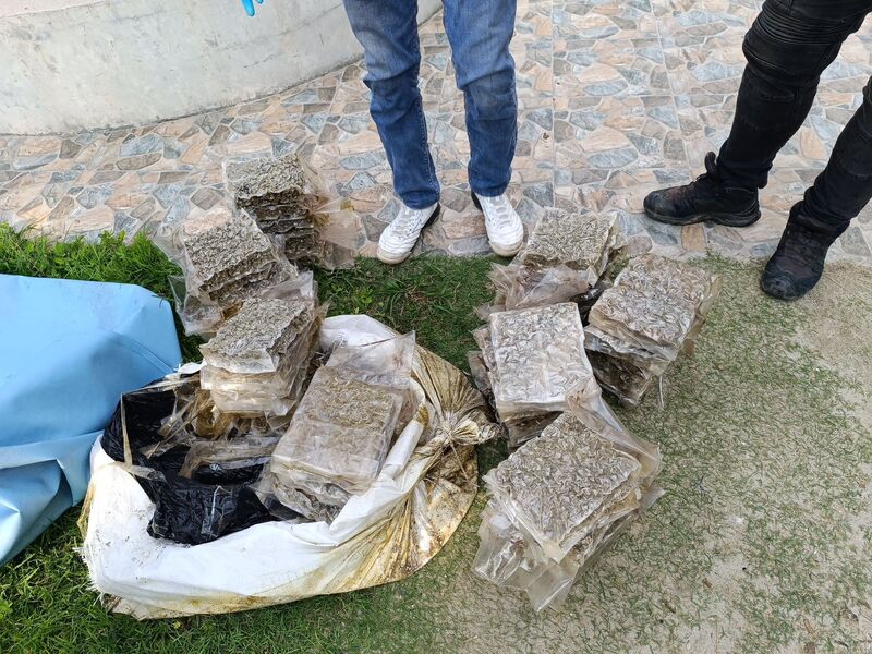 À l’issue d’une inspection, les forces de l’ordre ont repéré des sacs d’engrais remplis de briques de cannabis, au nombre d’environ 40, pour un poids total supérieur à 40 kilogrammes, dispersés sur le sable.