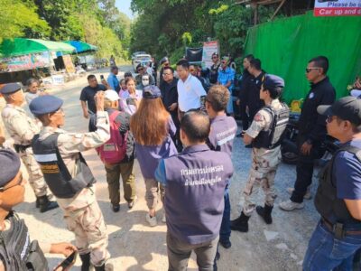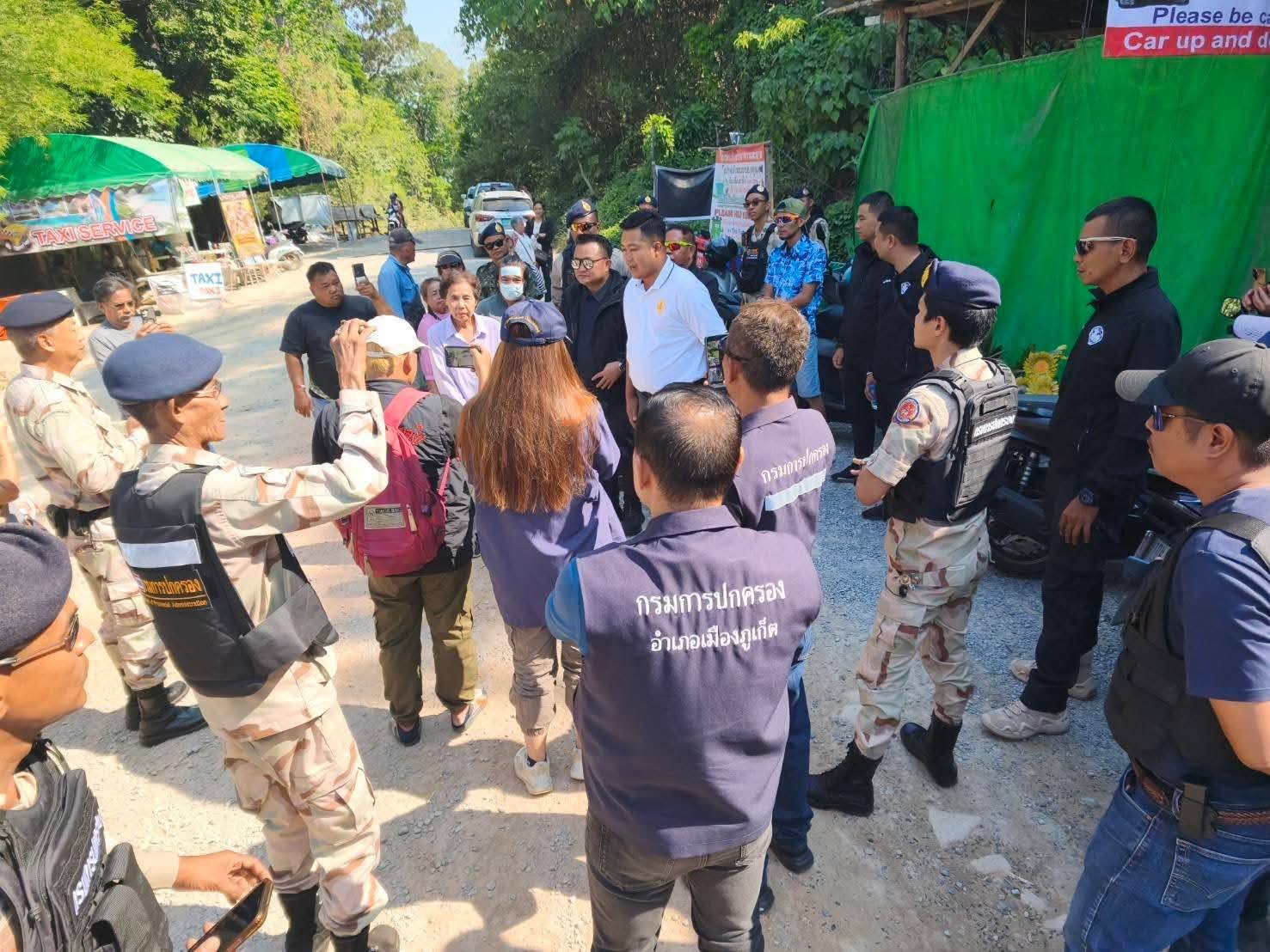 Plus de cent agents issus de différentes administrations ont investi les lieux : policiers de la station de Karon, unités de patrouille frontalière, agents forestiers, autorités provinciales et locales, chefs de village, volontaires de la défense territoriale ainsi que les habitants affectés. Parmi les personnalités présentes figuraient également Chalermpong Saengdi, député de Phuket (de la 2e circonscription), Danai Suksakul, responsable provincial de la prévention, et Chalermsak Maneesri, secrétaire du maire de Patong.