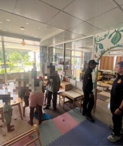 L’opération, dirigée par le responsable de la sécurité du district, a mobilisé les volontaires de la défense civile, la police de l’immigration, les agents du poste de police de Koh Phangan ainsi que des unités spéciales. Les forces de l’ordre ont perquisitionné la garderie « Babeli Koh » situé au village n° 7 (moo 7) du sous-district de Koh Phangan, province de Surat Thani.