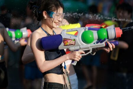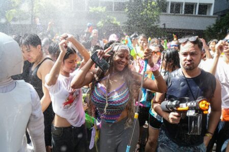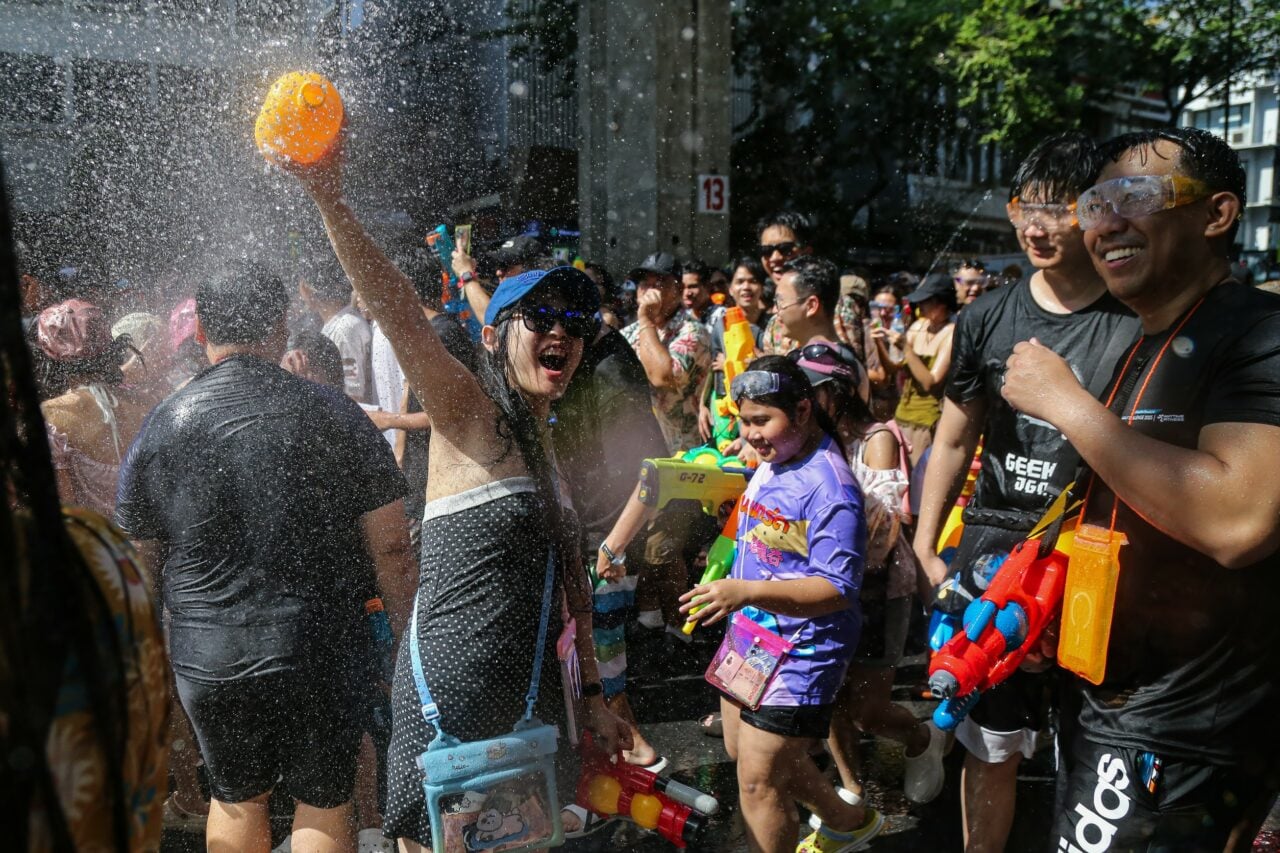 Sur thanon Silom, l’ambiance était électrique dès midi. La rue a été fermée à la circulation des véhicules entre les intersections de Sala Daeng et Narathiwat jusqu’à 20 heures, permettant à tous de s’adonner en toute sécurité aux jeux d’eau jusqu’à 21 heures. L’événement se poursuit jusqu’au 14 avril, de 12 h à 20 h chaque jour.