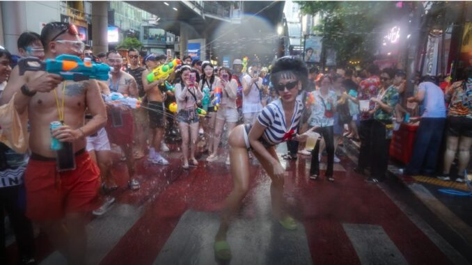 Sur thanon Silom, l’ambiance était électrique dès midi. La rue a été fermée à la circulation des véhicules entre les intersections de Sala Daeng et Narathiwat jusqu’à 20 heures, permettant à tous de s’adonner en toute sécurité aux jeux d’eau jusqu’à 21 heures. L’événement se poursuit jusqu’au 14 avril, de 12 h à 20 h chaque jour.