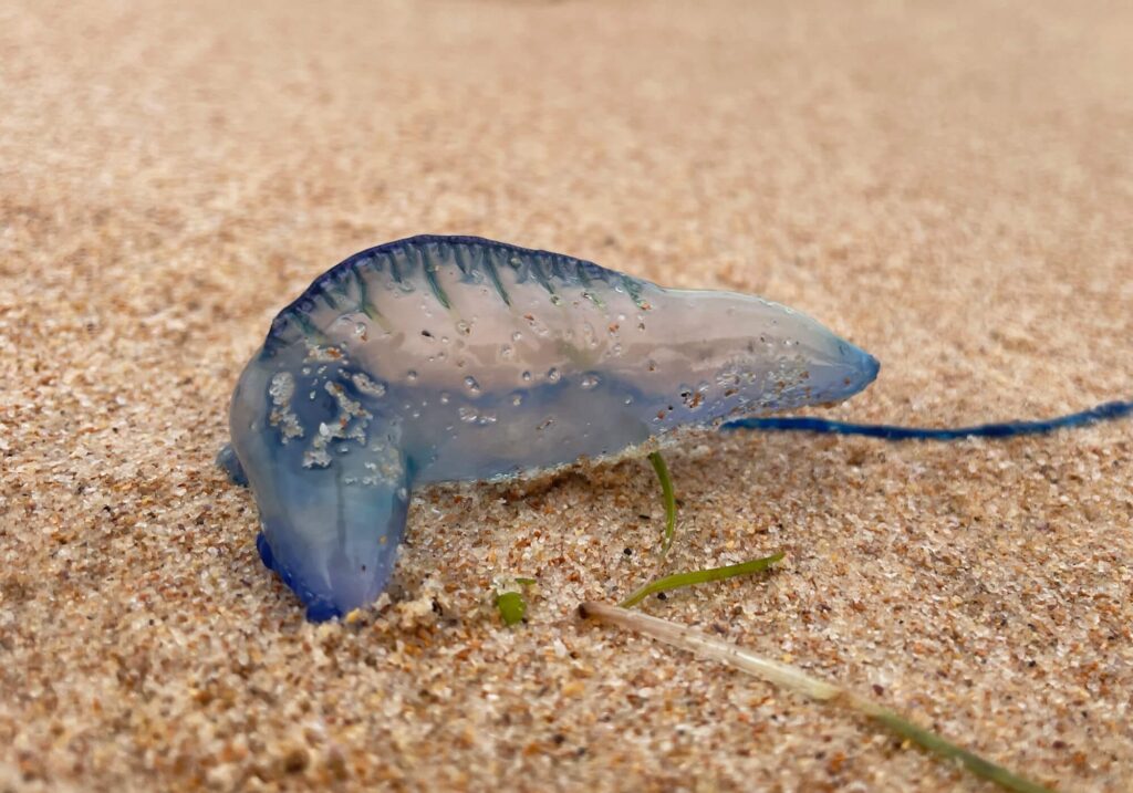 La physalie (Physalia utriculus), ou galère portugaise, flotte comme une bulle bleue. Ses tentacules urticantes mesurent jusqu’à 10 m, provoquant des piqûres en forme de fouet, les brûlures sont sévères et douloureuses et s’accompagnent de gonflements, elles sont courantes sur les plages de Phuket et Koh Samui.